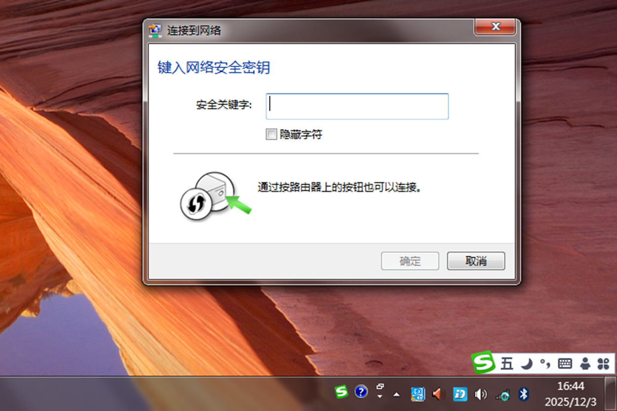 这时,你可以输入路由器上小贴纸上的密码(注意大小写)或长按路由器侧面的WPS键,WIRELESS无线灯会闪烁时。