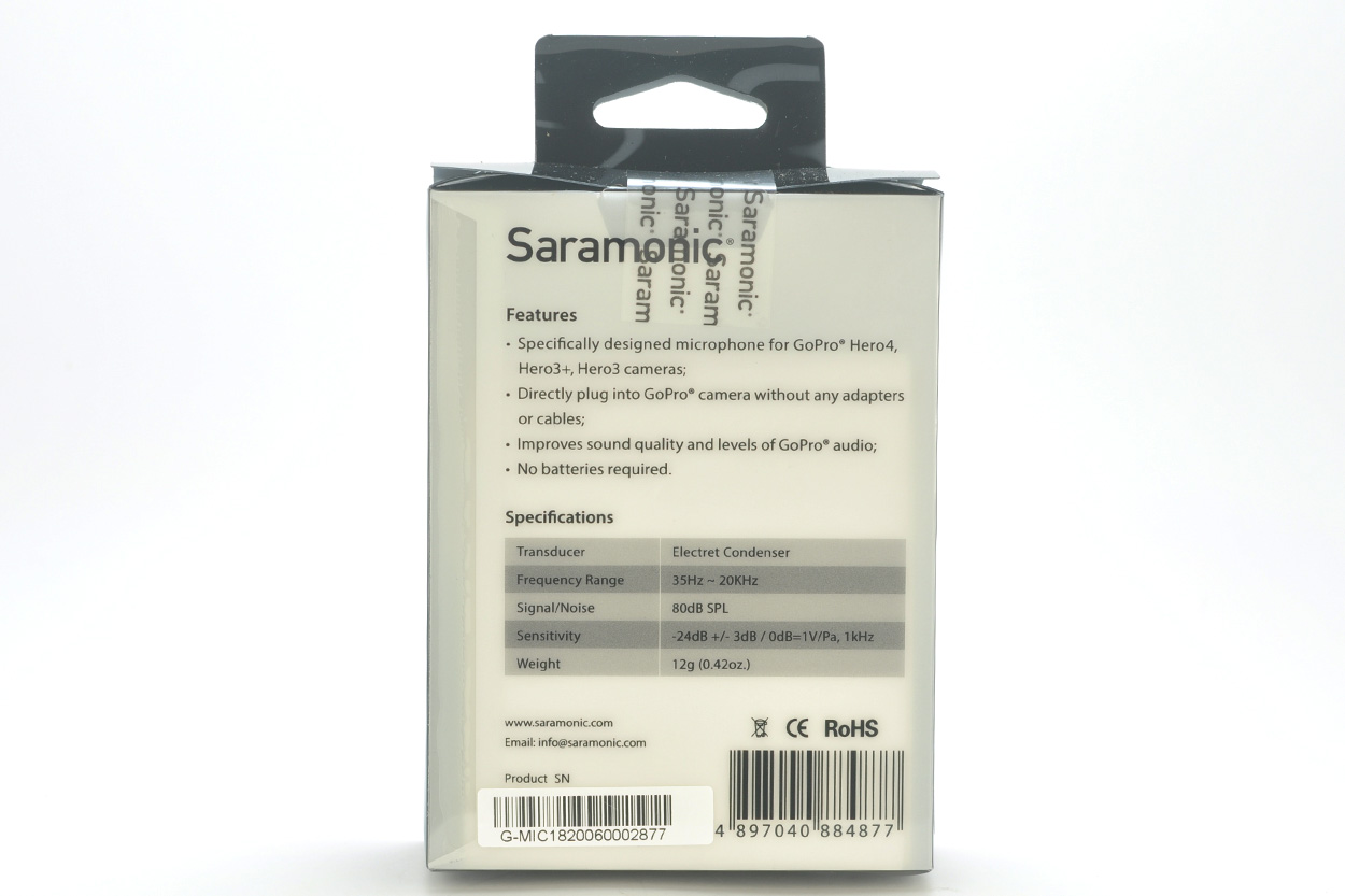 枫笛Saramonic G-Mic包装背面实物如下图。