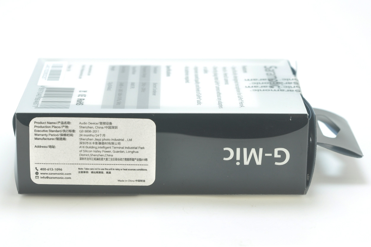 枫笛Saramonic G-Mic包装侧面实物如下图。