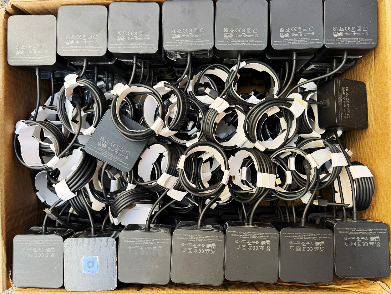 全新散装到货,到货大部分有膜,全会有轻微的小划痕,电源是全新没有使用的,这个跟前几天到货的60W的外观是一样的,只是这个没有磁吸,功率是45W的,60W的那个国内外都没见有卖,也没有查到资料说具体配在什么产品上的,当时更新时只是感觉一样就更上了,这个才是官网卖39美刀的45W原装电源SWJ1-01,Square Terminal POS机上的原配电源,发前配送了一条二手的黑色8字电源线,收到就能用,电源DC线长1.38米,重199.2克。