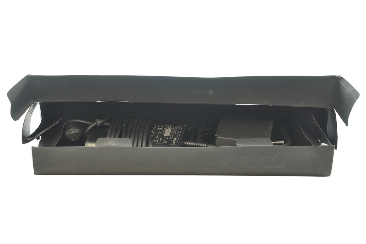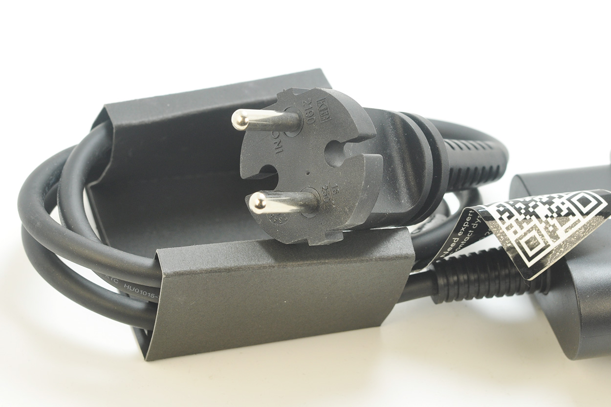 欧标两园插黑色的纸盒开启后,电源实物如下图。