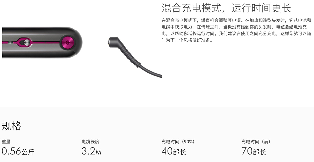 到货只有英标港标大三角,只有这一种插头,别的全没有,散装全新到货,电源碰电源难免有小划痕,但电源到货并是不使用过的二手,这个是英国Dyson Corrale straightene直发器上的原配3.2米电源线,磁吸式设计,电源磁吸头可以360°旋转,连接便捷,可连接Corrale直发器或充电底座。