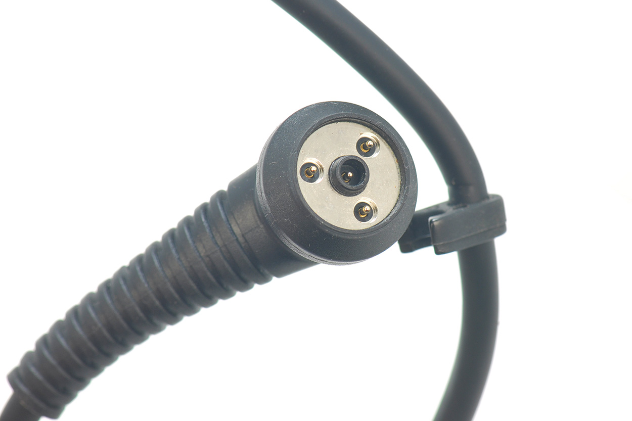 磁吸接口细节如下图,内正外负,中间的针是负极,外面的金属部分是负极。