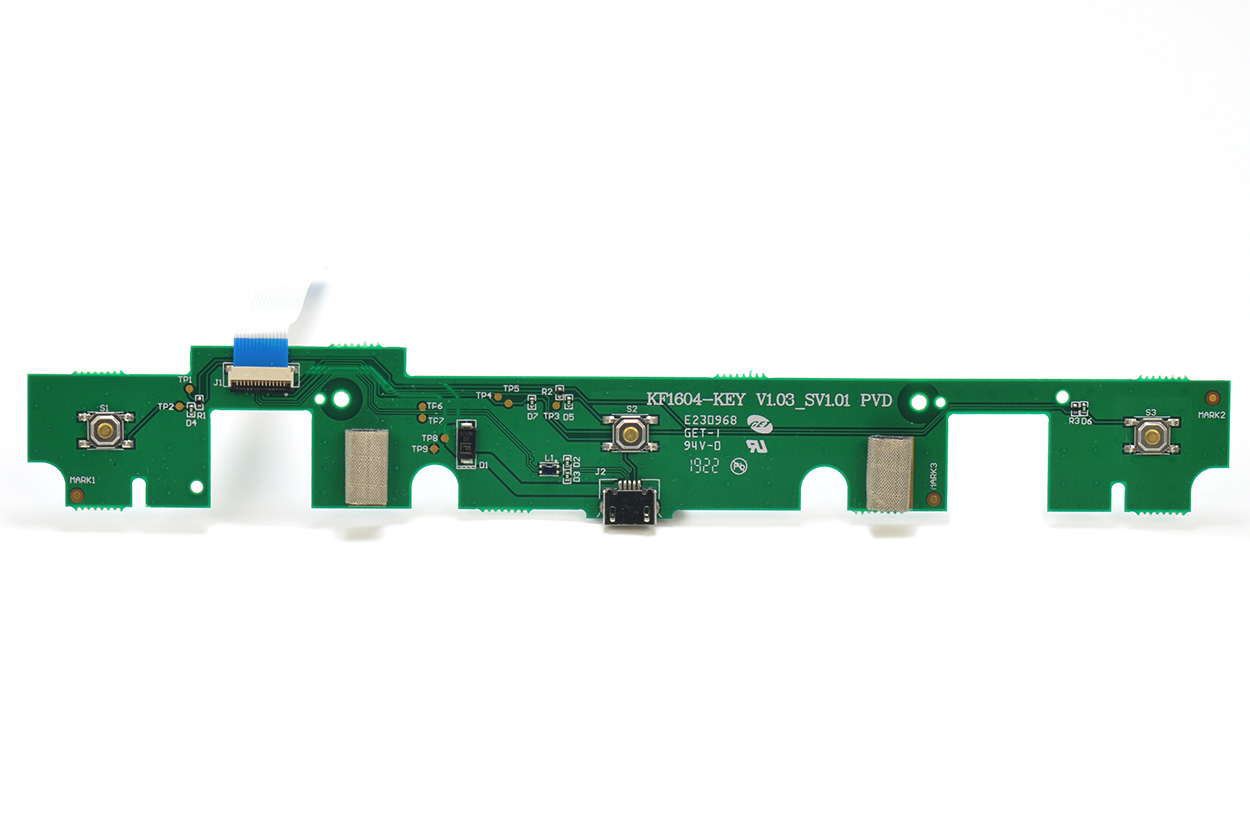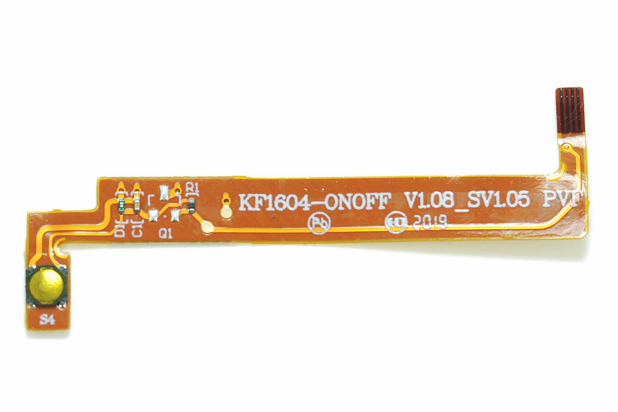 顶部开关排线正面如下图,上面有KF1604-ONOFF V1.08_SV1.05 PVF的印字,实际如果你的开关部分坏了,一般是S4位置的按键坏了,你抠开,用酒精或橡皮擦一下钢片的内部,就能凑合用。