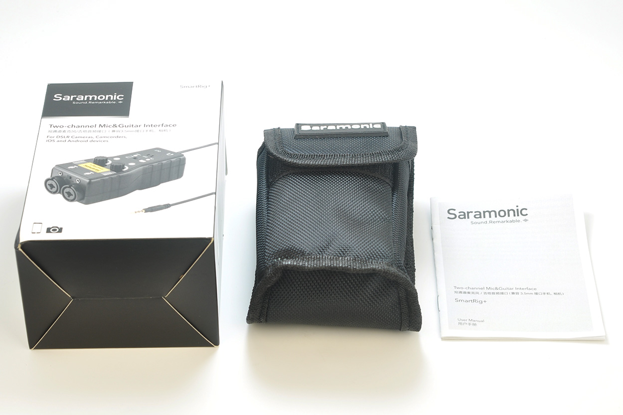 拆开就这么多附件,一个收纳包,一个枫笛Saramonic SmartRig+ 2通道XLR转3.5mm麦克风音频混音器。