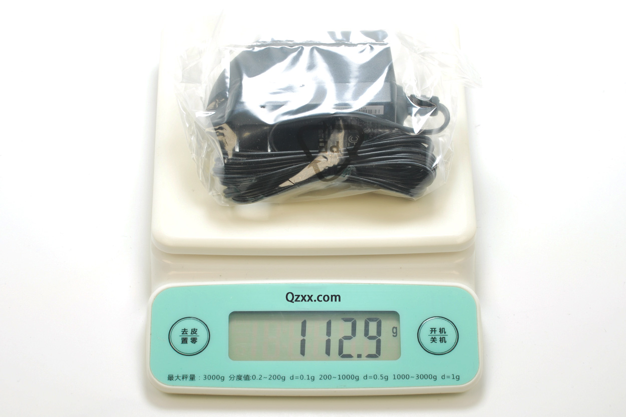 电源不含电源插脚长7.4厘米宽3.1高4.3厘米,线长1.58米,重112.9克。
