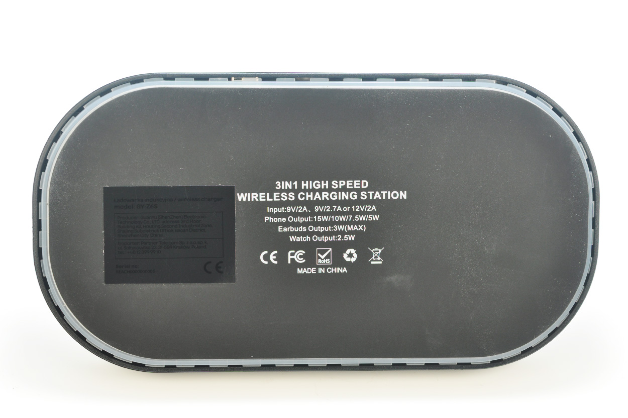到货是全新散装的,单充电板一个,别无附件,送了一条USB-C口的数据线方便你测试,不要不减钱,也没有配充电头,强烈建议使用QC 3.0适配器,当然你也可以随便找个5V2A以上的充电头来用,只是充电稍快点稍慢点的问题,为什么这样说,如果同时充电,三个设备总功率要18W左右,加上无线充电功率损耗,最少要9V2A的QC充电头功率18W才可以,你用5V2A给这三设备充电,功率怎么算都不够。