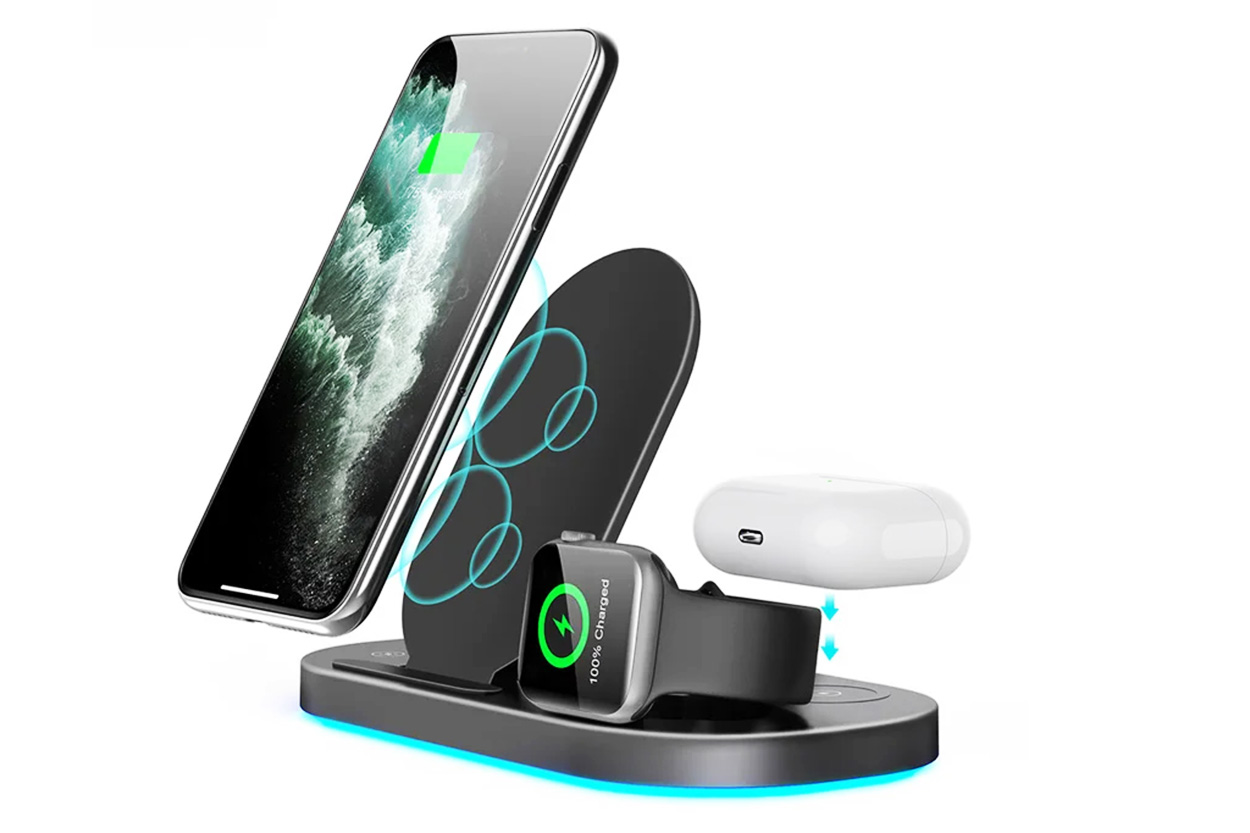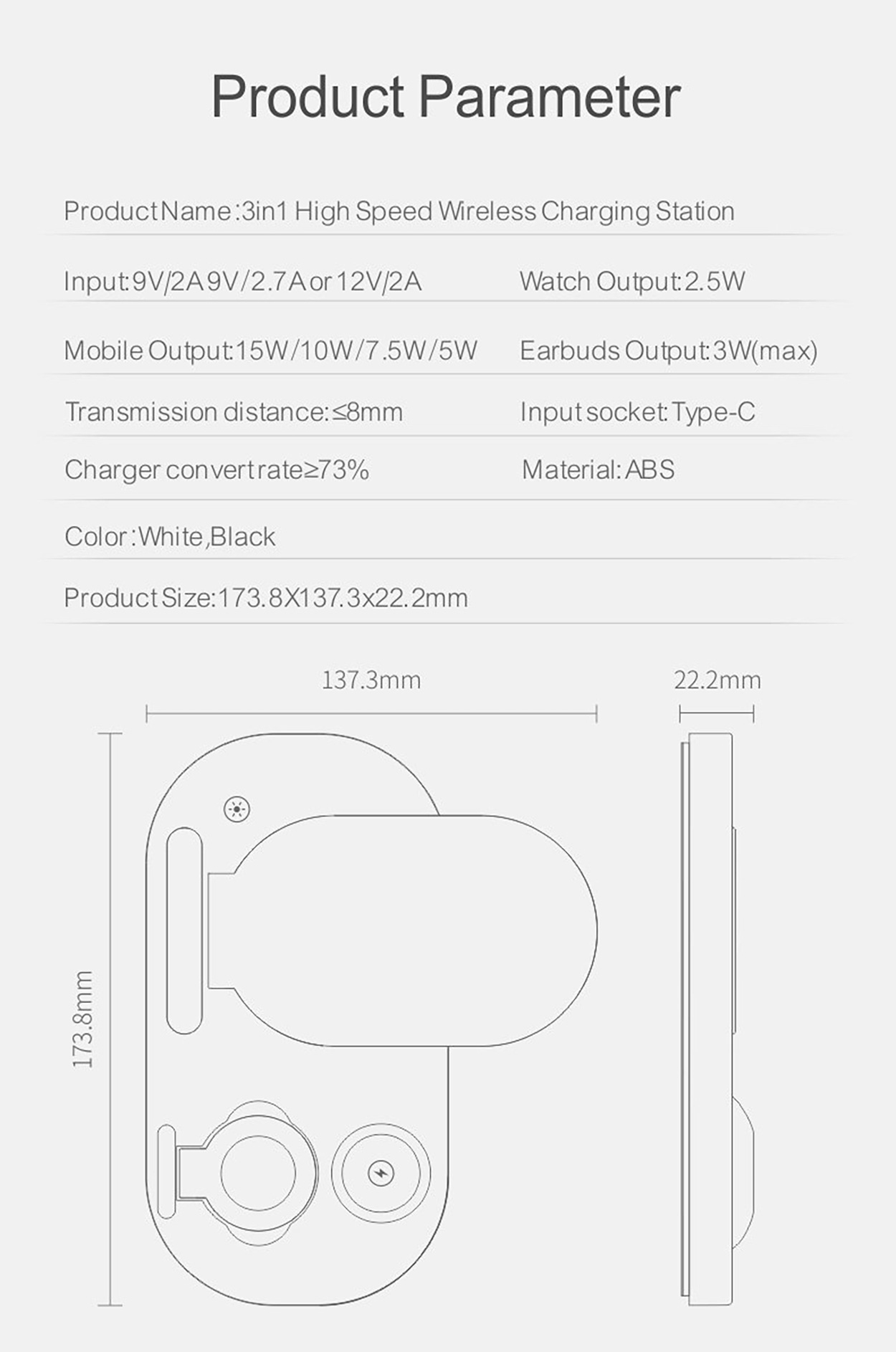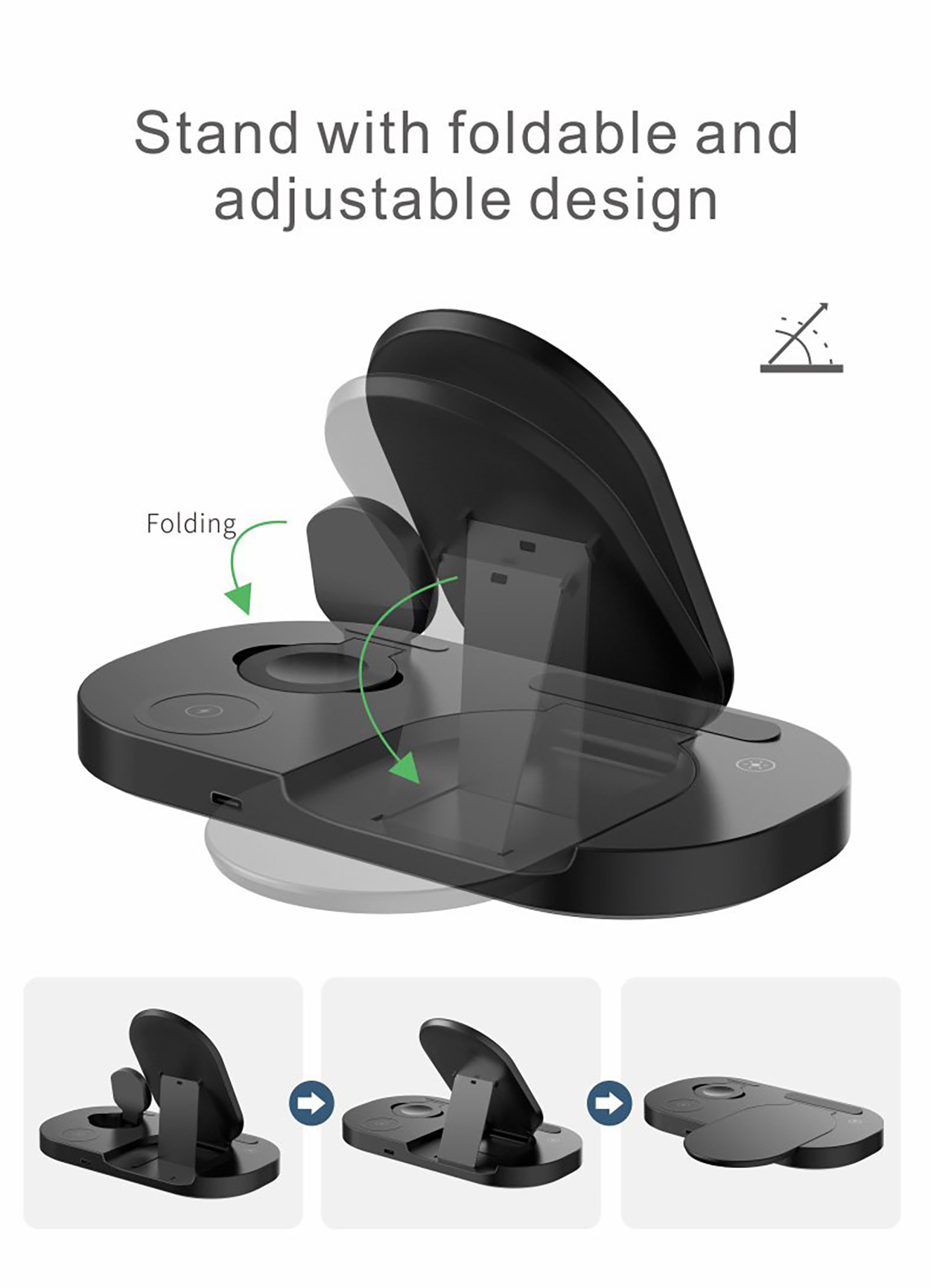 3合1无线充电器是一个紧凑的充电室,仅由一个插座供电,可以同时为3台设备充电。当为您的手机、苹果手表、AirPods 2或AirPods Pro或其他一些TWS充电时,只需戴上它们,无线充电将自动开始,所有这些都将使您的办公桌干净整洁,并使您的生活更轻松。充电器的设计非常节省空间,可以帮助您很好地整合手机的智能和生活,特别是对于苹果用户。此外,灯光环非常丰富多彩,并具有显示充电状态的流水灯效果,如果您想关闭或打开灯,只需触摸感应键即可。