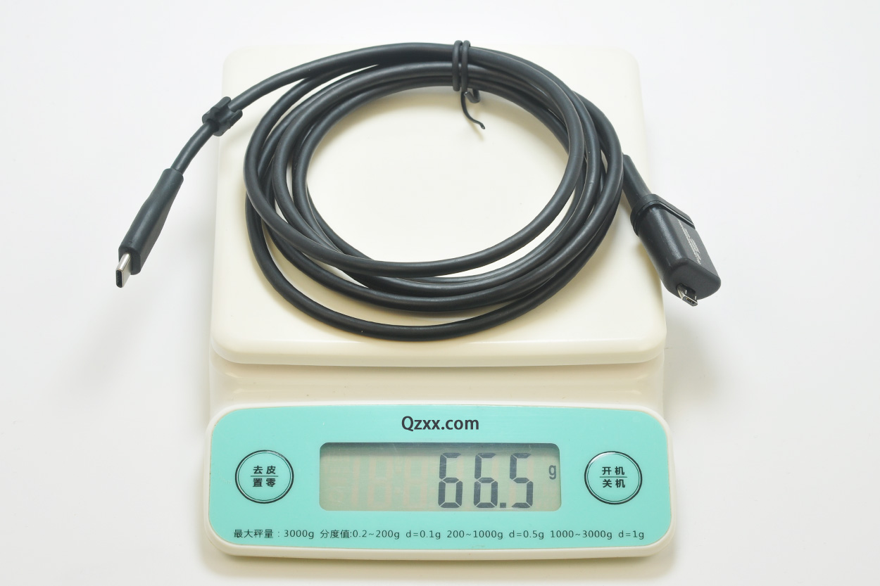 到货实物如下图,线长1.5米,重66.5克。