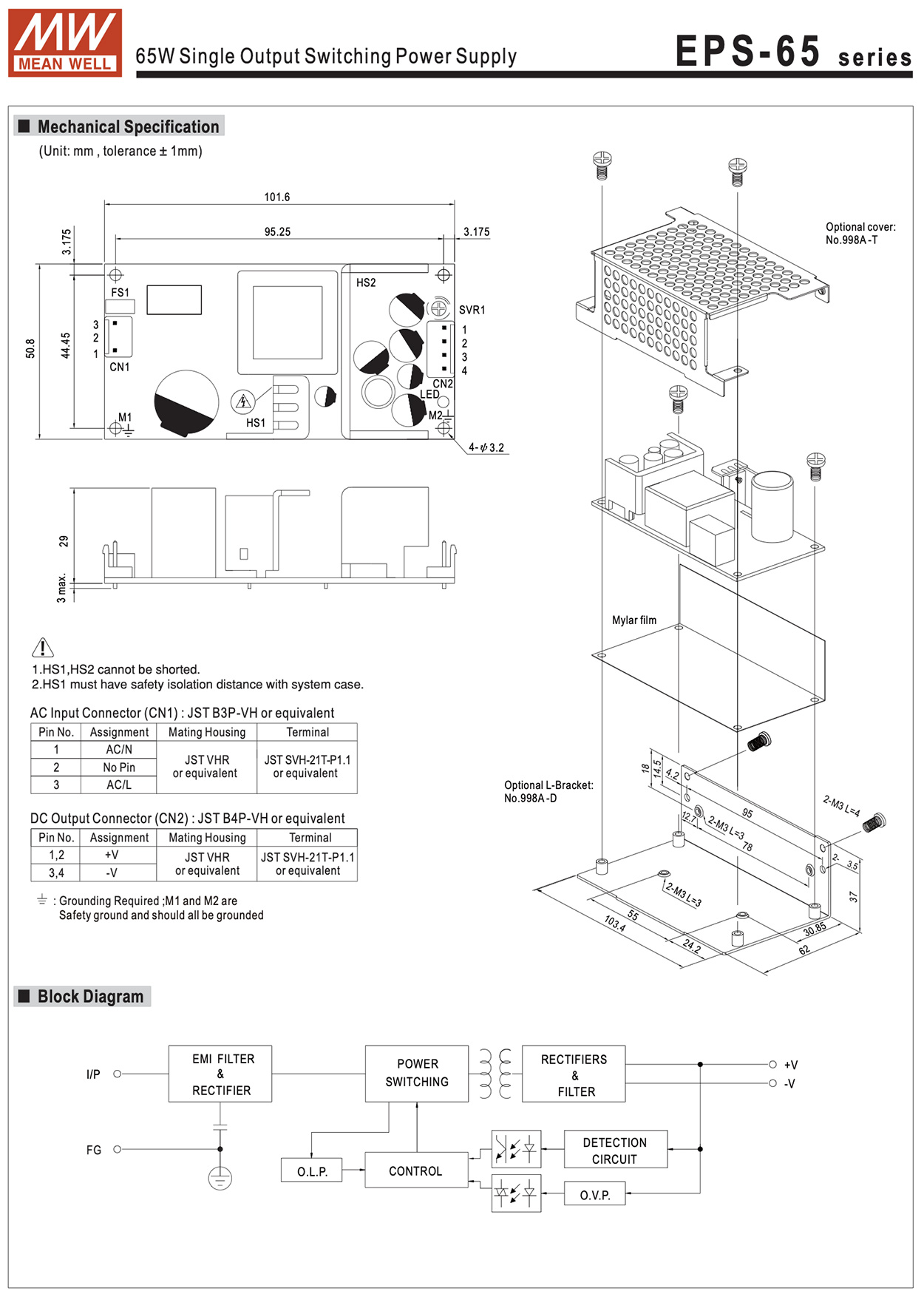 此外,EPS-65-12 支持80 至 264 伏交流电宽电压输入,同系列产品还可提供 3.3 伏至 48 伏的多种输出电压选择。产品转换效率最高可达 90%,空载功耗极低,小于 0.3 瓦,可满足Ⅱ 类电气设备(无接地保护)的系统设计要求。