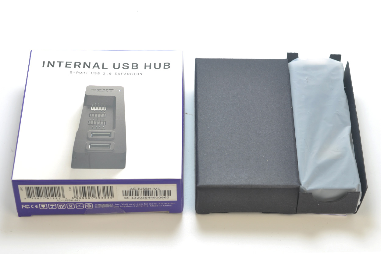 恩杰NZXT AC-IUSBH-M1 机箱内置USB集线器包装合顶部和底部实物如下图。