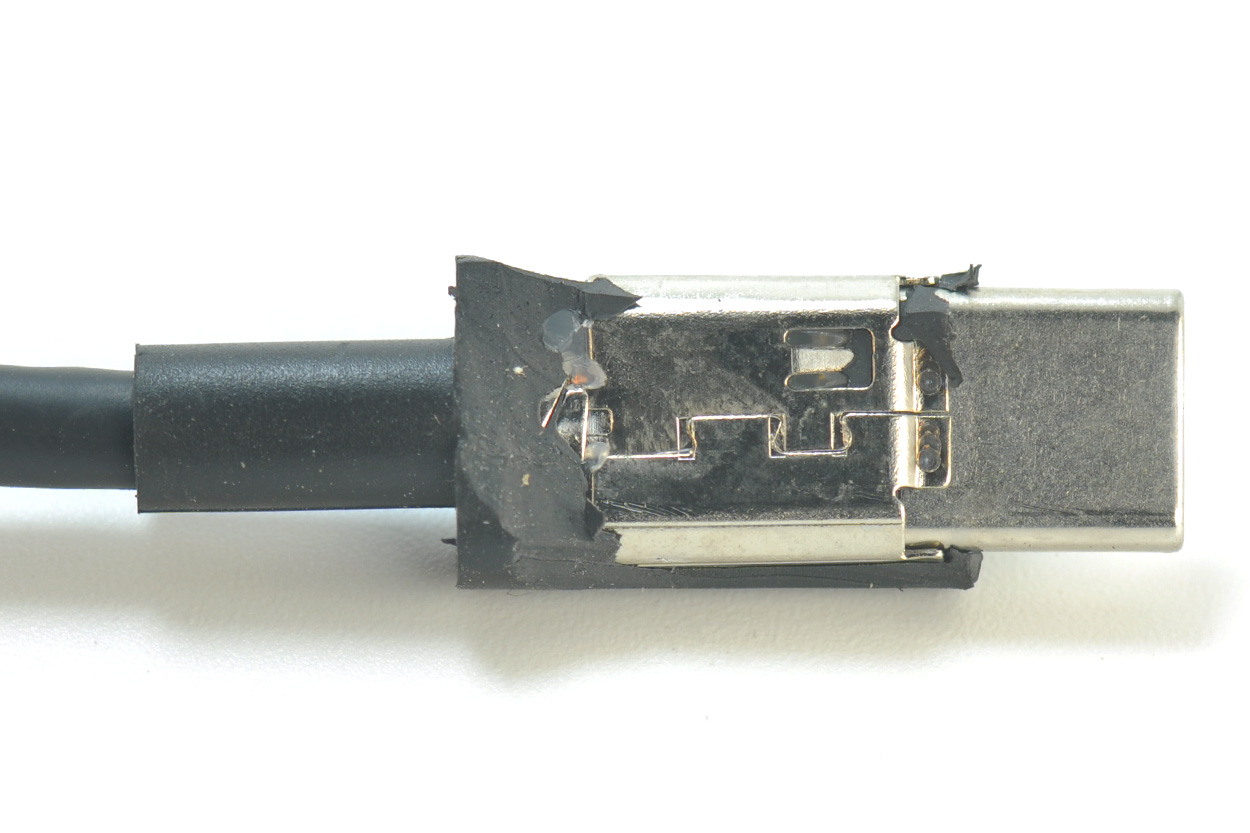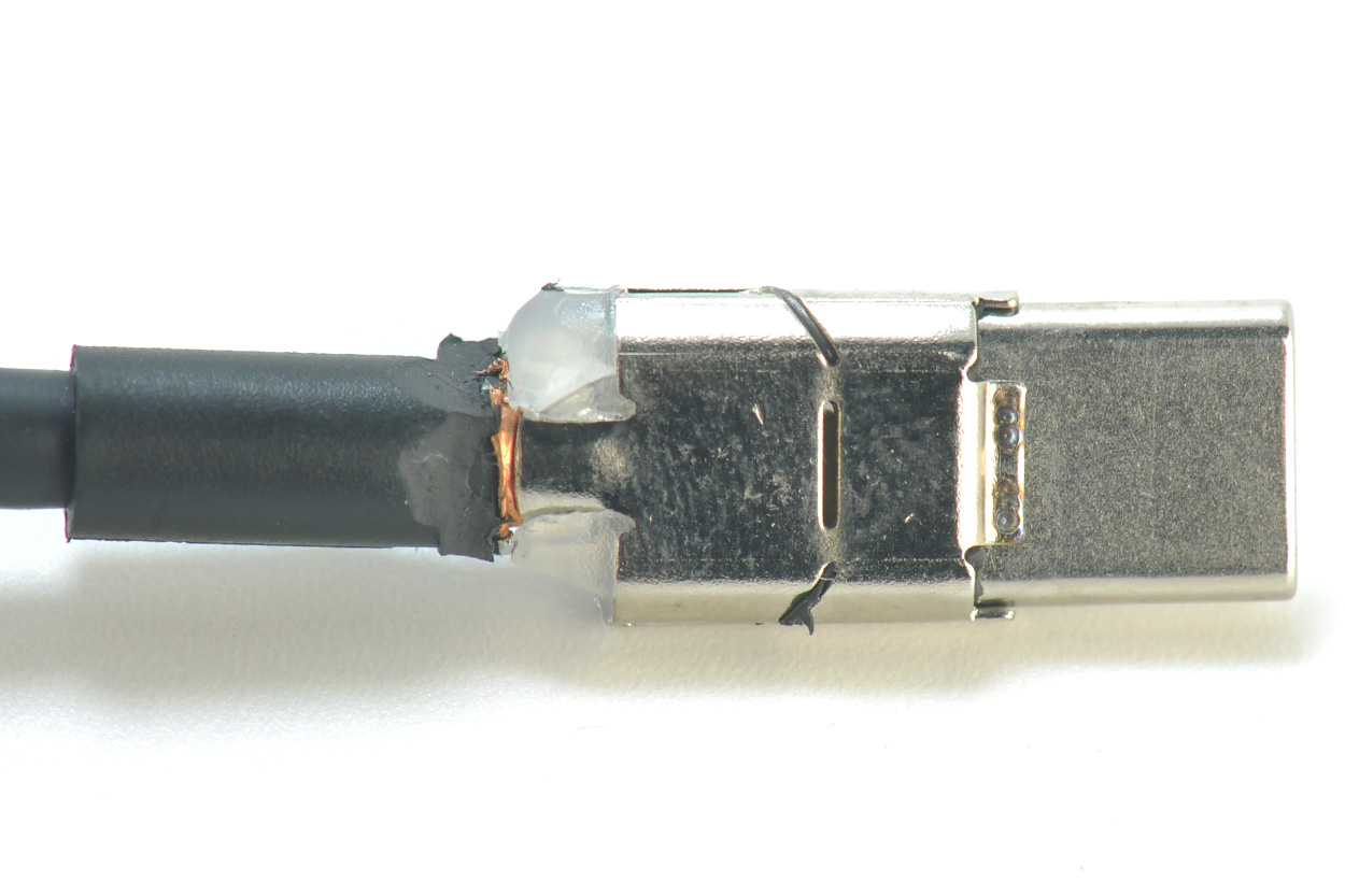 习惯性拆解,先切开USB-C口看一下,可以看到里面的金属屏蔽壳。