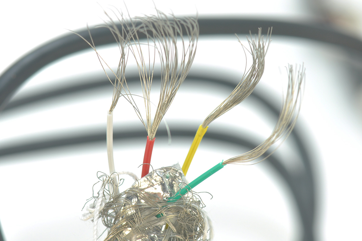 屏蔽网里也有抗拉扯的棉线,线芯切开后实物如下图。