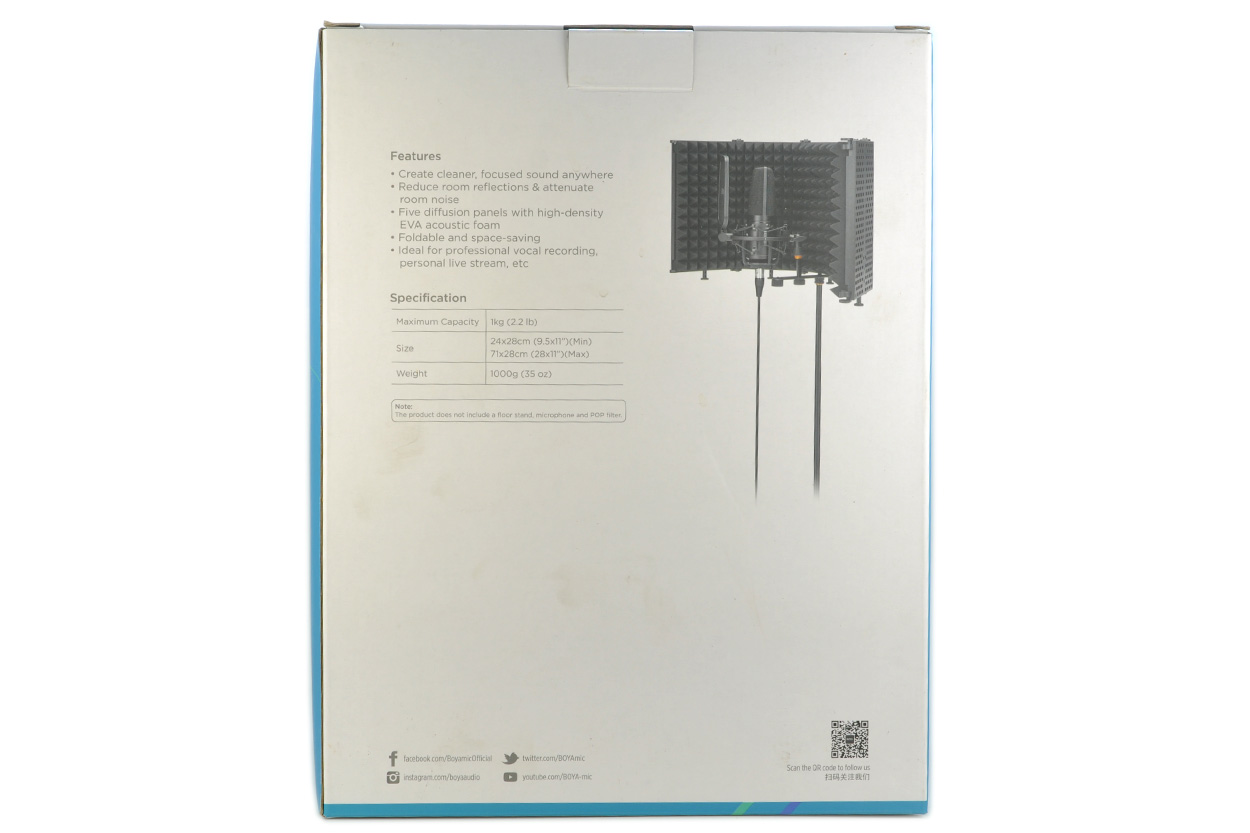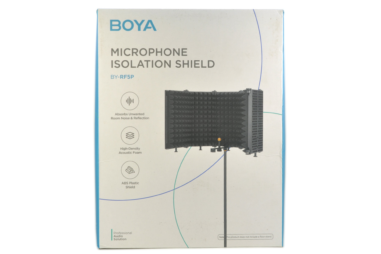 BOYA BY-RF5P MICROPHONE ISOLATION SHIELD 包装盒全开封了,找了个新的拍的图,包装盒的正面如下图。