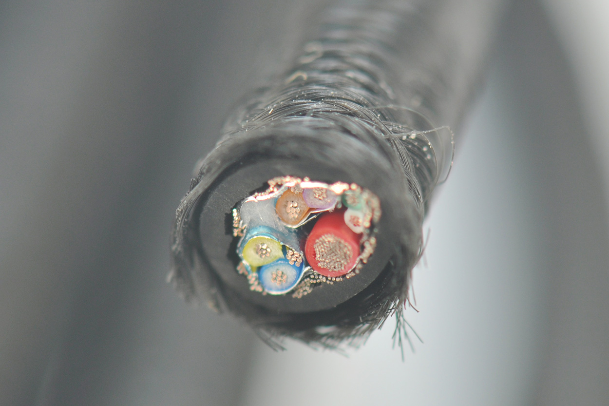 切开看一下线芯,可以看到红色正极供电做了加强线芯很粗的。