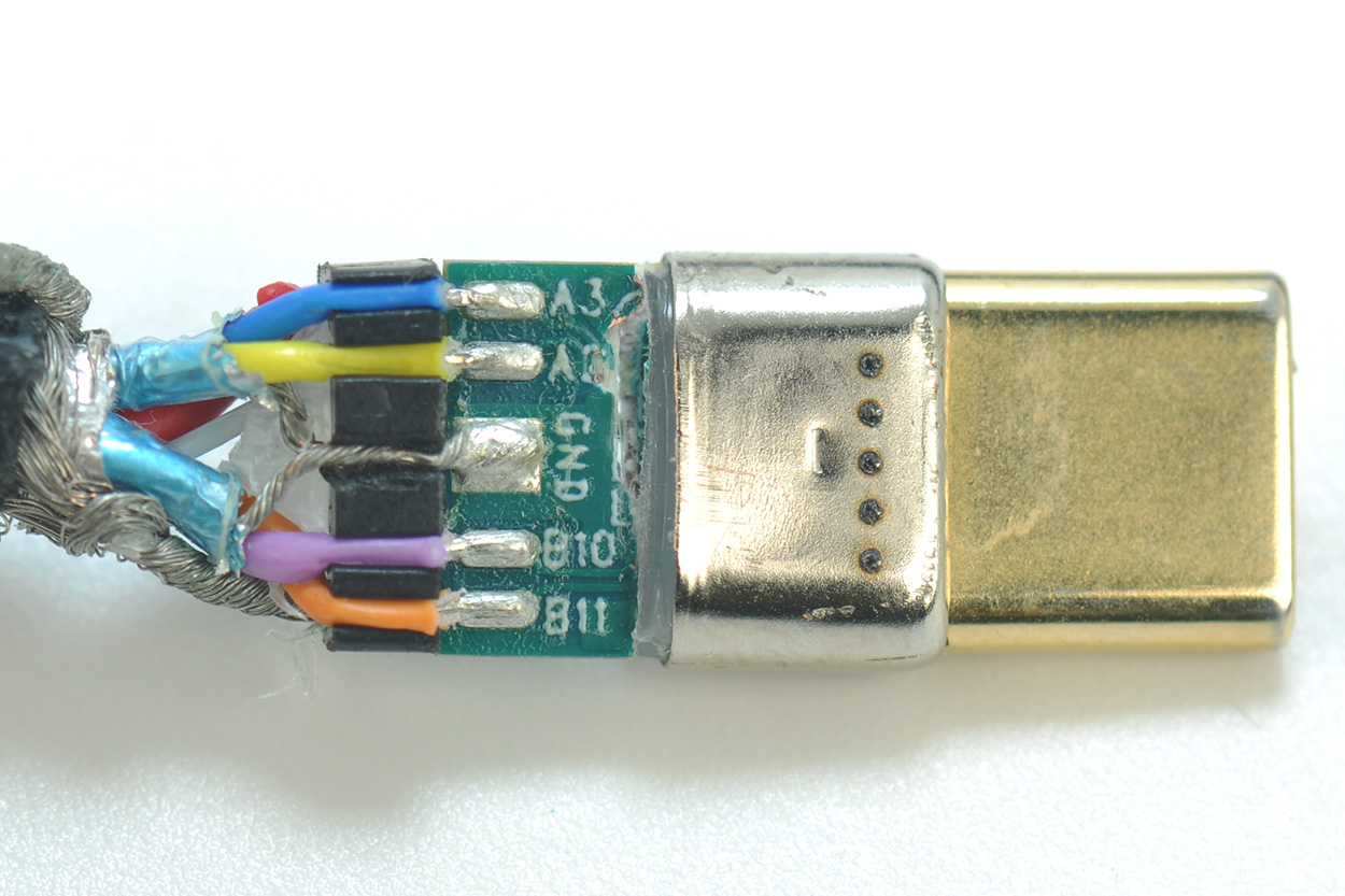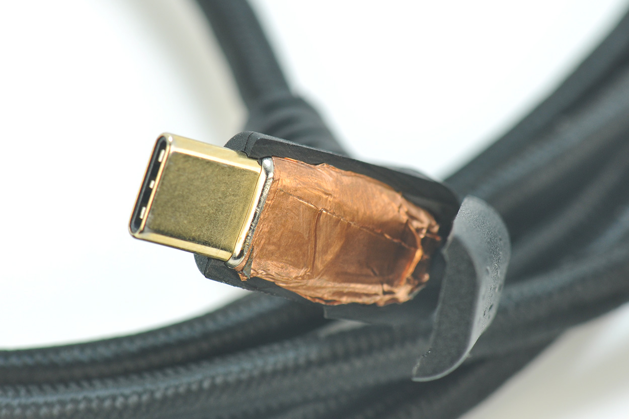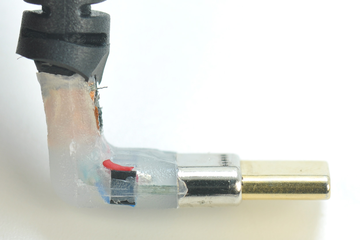切开看一下C口的注胶,可以看到里面的铜箔屏蔽。
