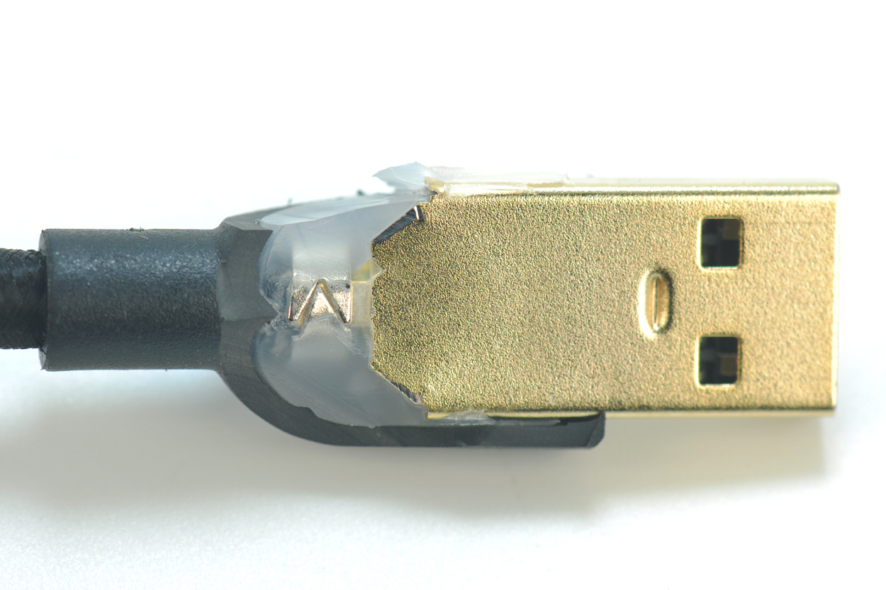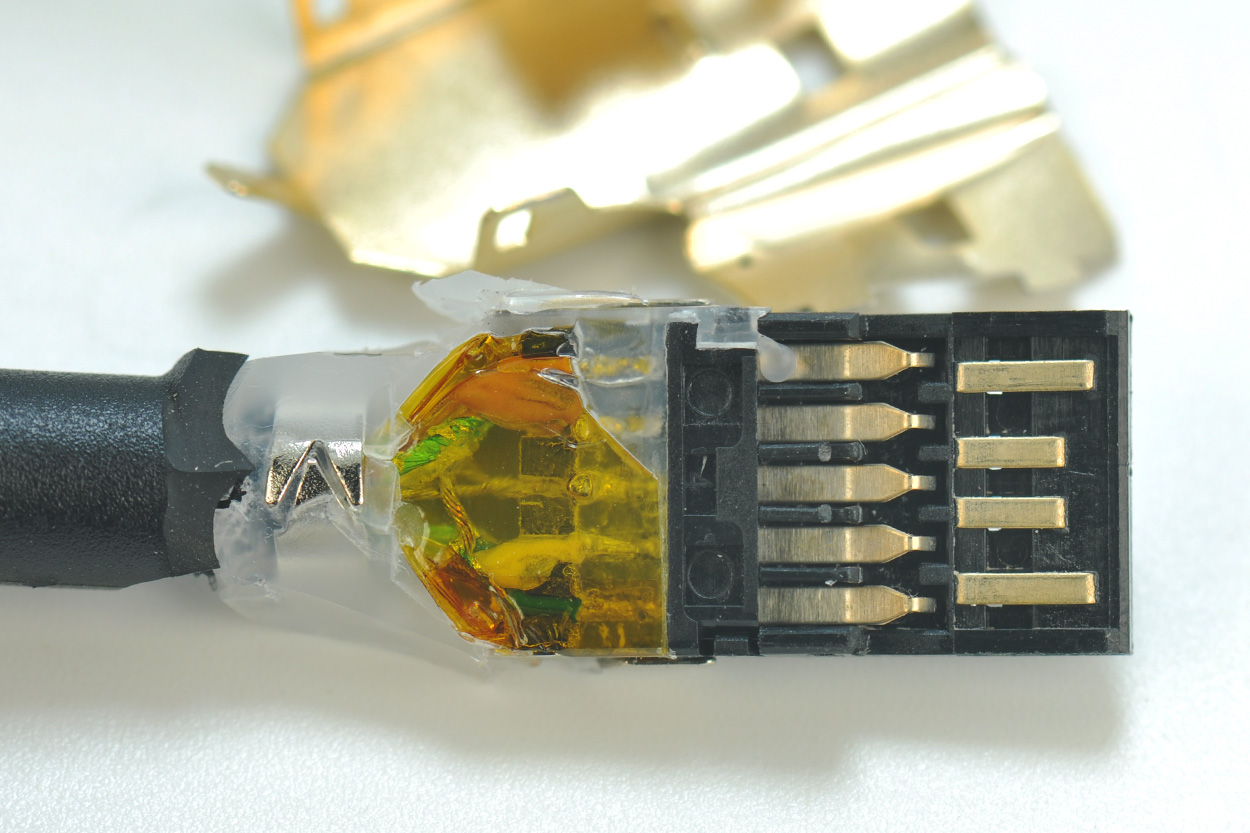 去掉外面的镀金接口后,里面是标准的USB 3.0接口,前4针后5针。