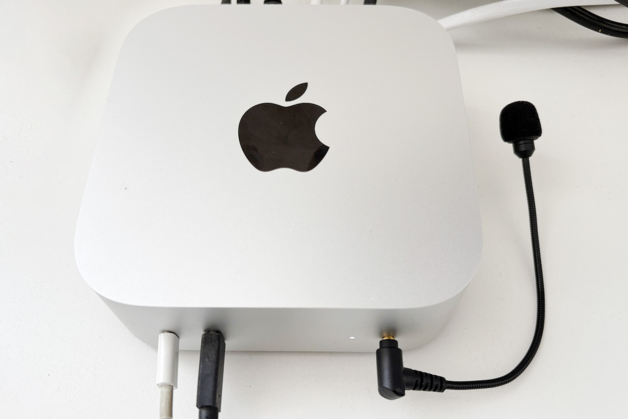 用在Mac Mini上是这个样子的,小巧又可爱,解决了Mac Mini没有麦克风的问题。