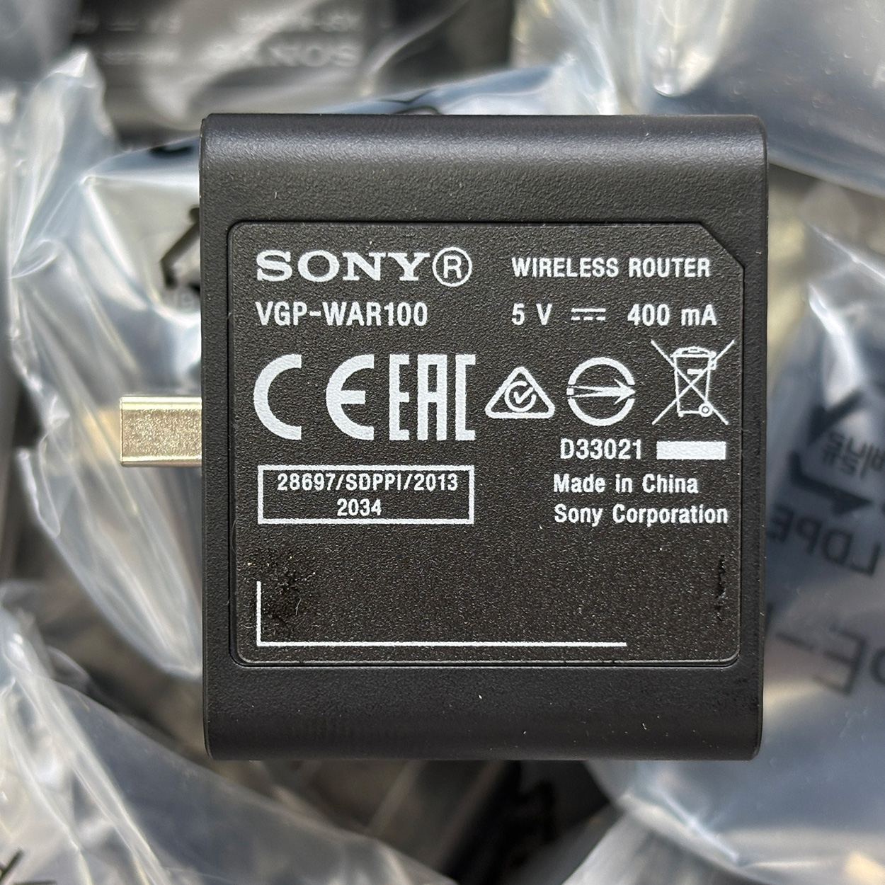 背面如下图,SONY Wireless Router VGP-WAR100 5V400mA 产地中国