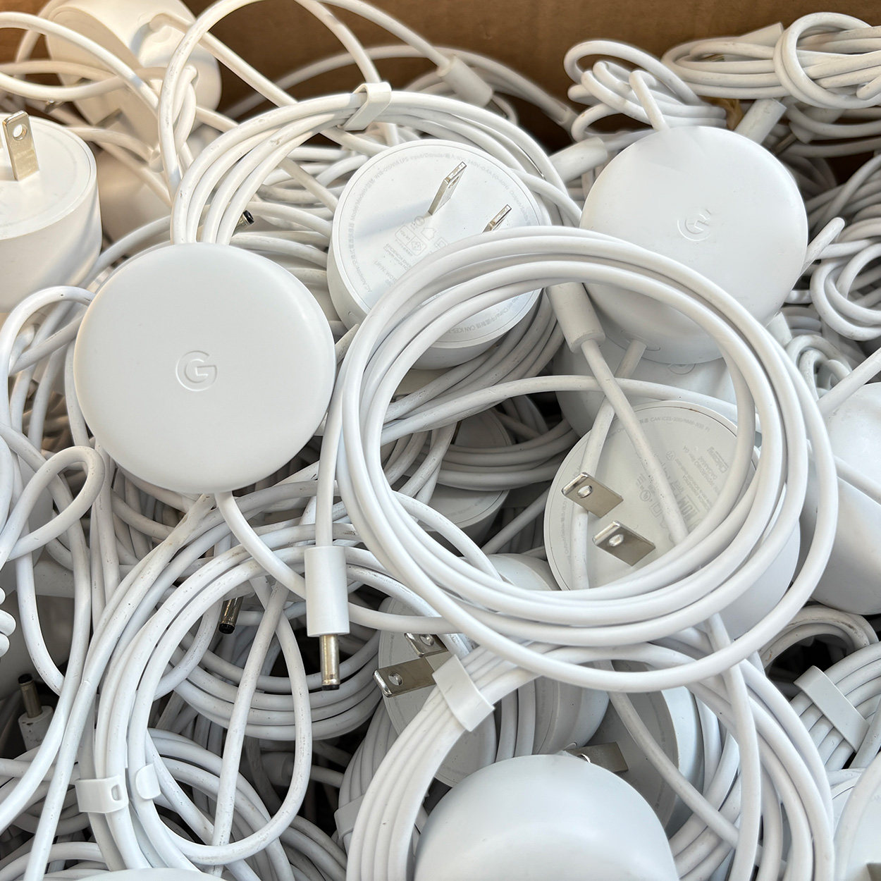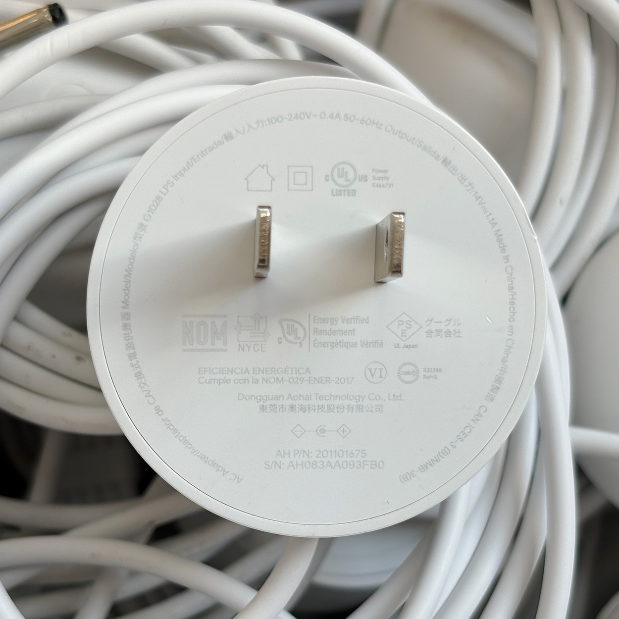 新到货,这批全是散装到货的,接口无使用痕迹,只是散装到货,电源碰电源,会有轻微的小划痕,不细看看不出来。原装 Google Nest 电源线充电器 – 兼容 Google Nest WiFi AC2200 路由器二代、Google Nest Home Hub、GA01423-US、GA01426-US、GA01425-US、W18-015N1A、W18-015N1C、G1015-US、G1028,输入:100-240V 50-60Hz 0.4A,输出:14V 1.1A 15W – Google Nest 电源, 线长:150 厘米。